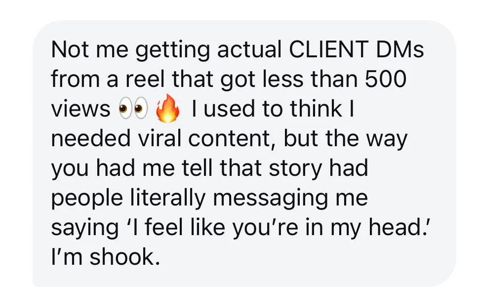 In 2023, I made the drastic decision to stop scrolling for an entire summer. Instead, I used that extra time to fall back in love with my business. I re-evaluated my story, messaging, content, mission, brand – everything I teach inside SSA. And I slowly came back online without a content plan. Instead, I treated my page like a journal and journaled about the work I was doing BTS with my clients. Then I had my first $7k day, two weeks later I sold out half the spots in my mastermind, and booked 2 speaking events.