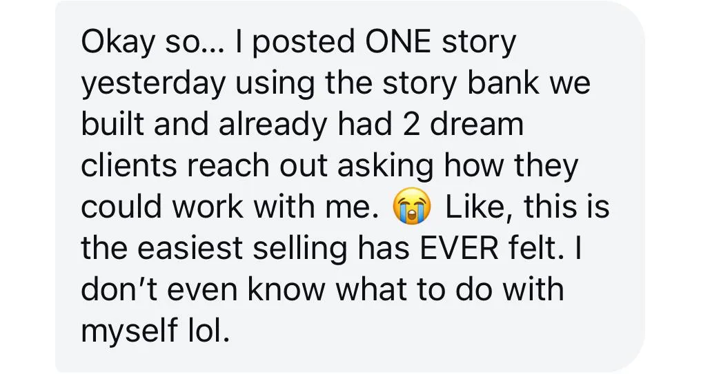 Ah, the age old limiting belief of "my story isn't as good as XYZ". Can I tell you a secret? You don't need to have a huge transformation story to use Story Selling to sign clients. 😉 One of the steps in my Story Selling Framework walks you through exactly how to pull micro-stories from your everyday experiences in business to use to sell.
