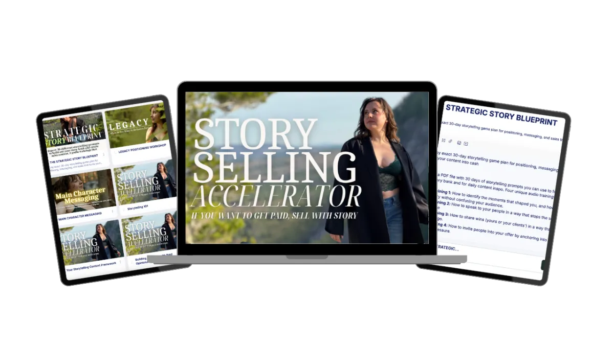 Get my exact 30-day story selling game plan for positioning, messaging, and sales that turns your content into cash.